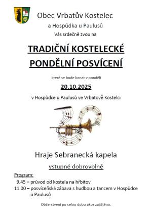 Tradiční pondělní posvícenský průvod a zábava 9.45 - odchod průvodu od kostela 11.00 - posvícenská zábava (časy jsou orientační)